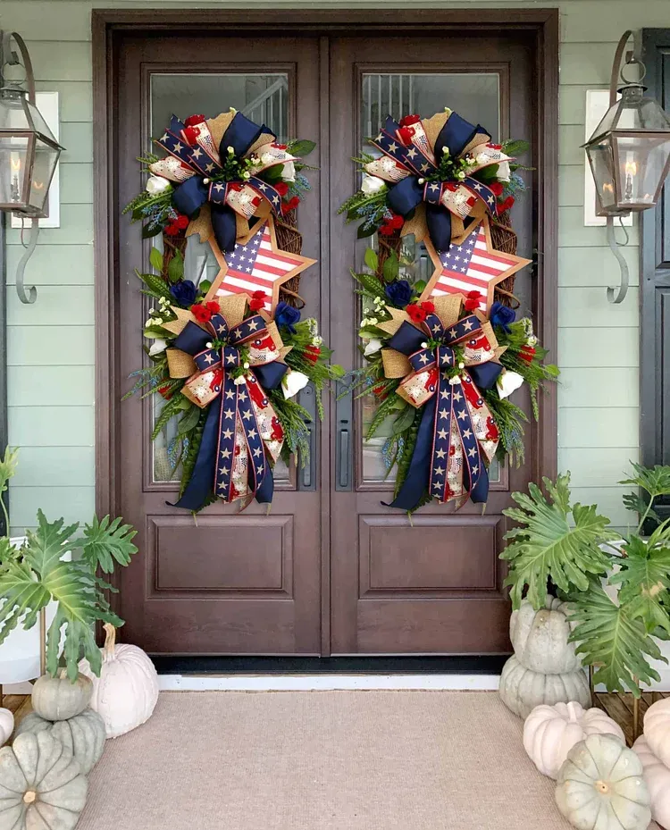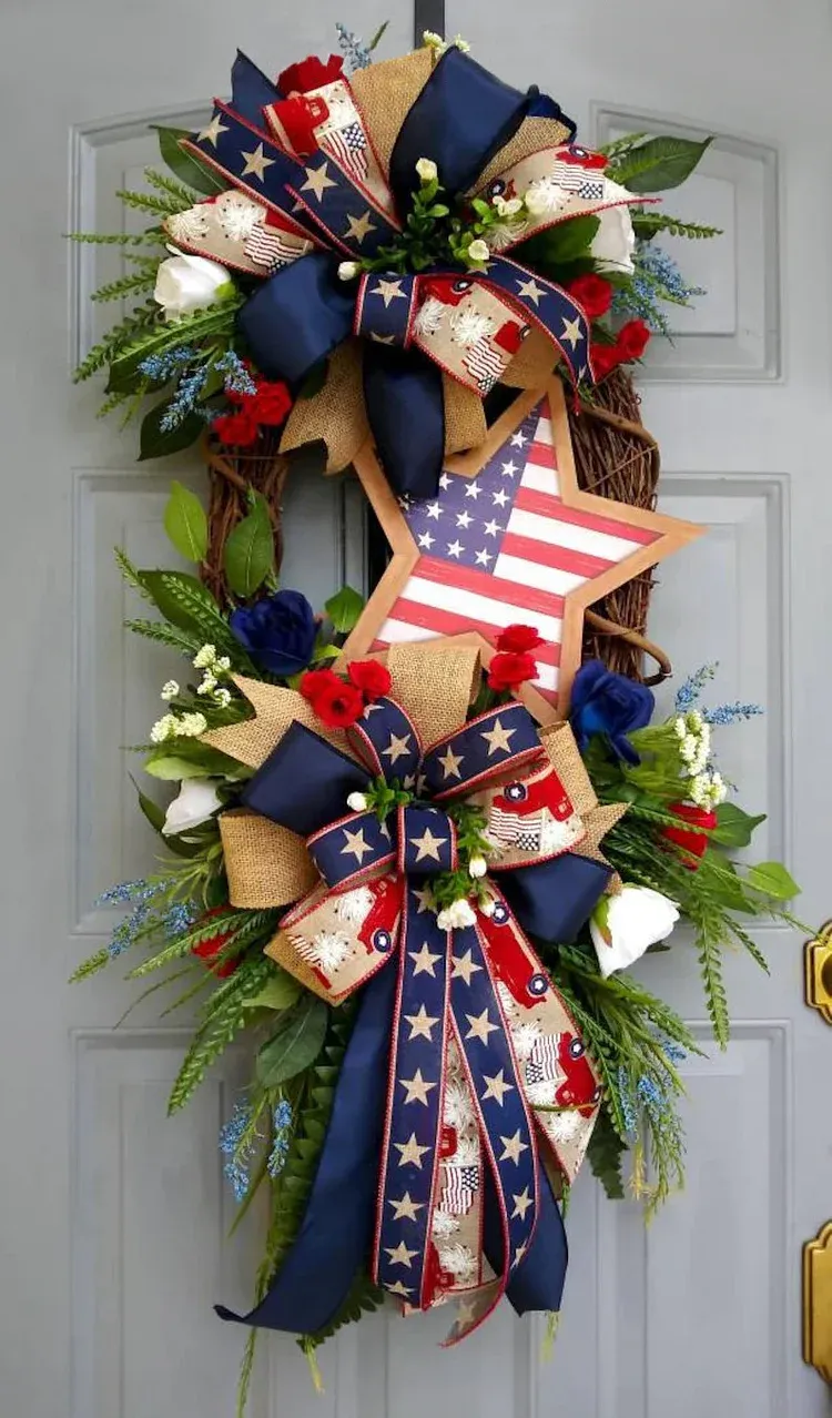 📐Size: This wreath is made on a 18" oval grapevine wreath base.Filled with mixed flowers, Star sign, beautiful bow and more.