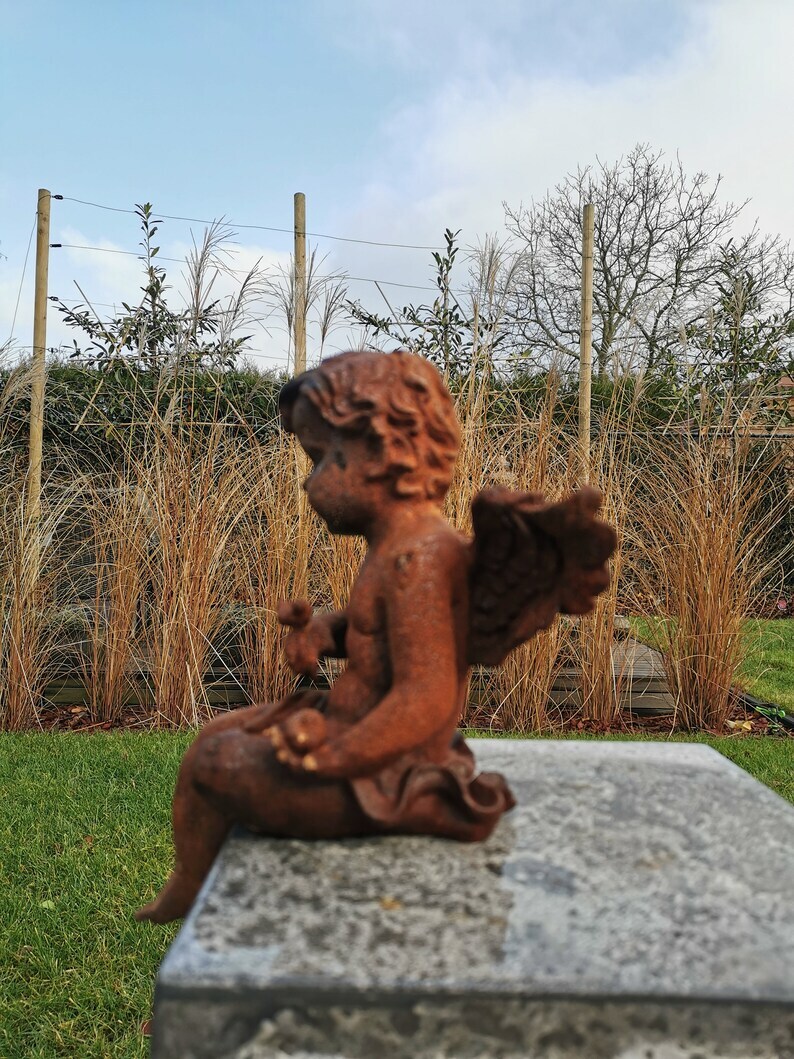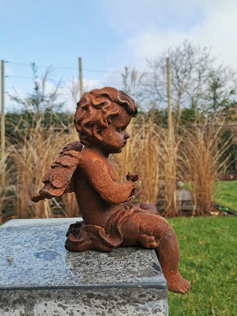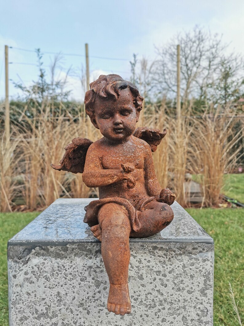 Antique garden sculpture of an Angel (boy) - Sitting model