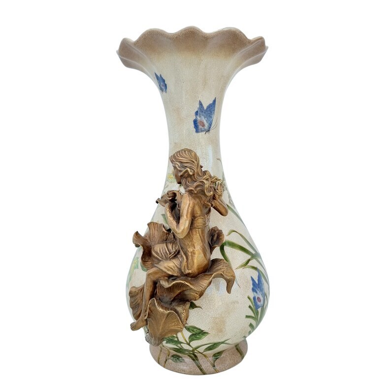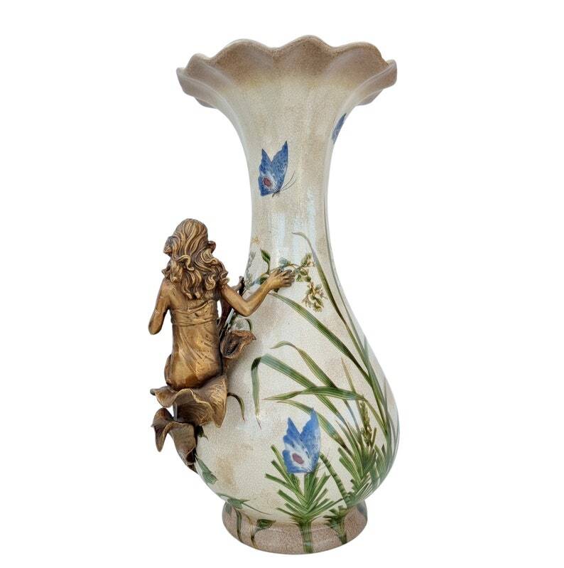 Art Nouveau style flower vase - Porcelain vase with bronze ornaments - Spring decoration