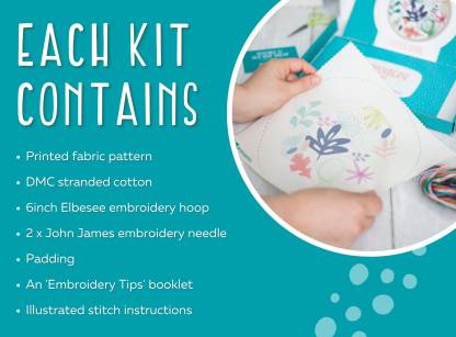 What makes this embroidery kit extra special is that, as well as step by step stitch instructions and quality supplies, it has the pattern already printed on to cotton fabric in colour so that there is no need for transferring which makes your stitches really neat!