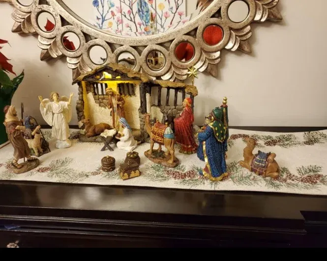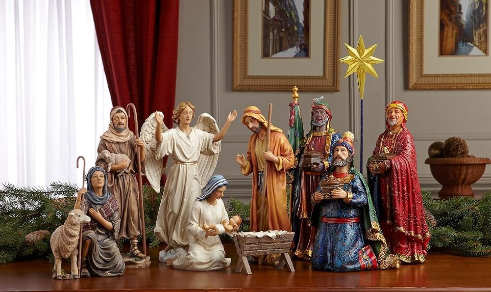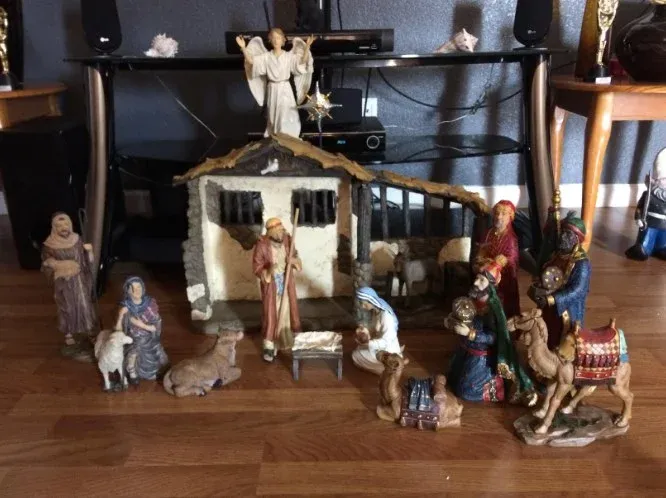 This 11 piece, 14 inch, nativity scene includes the Mary, Joseph, Baby Jesus, the Three Kings, Angel, Shepherds, manger and North Star figurines. It is an heirloom that will be a source of meaningful joy for many years to come as it is passed down from generation to generation.