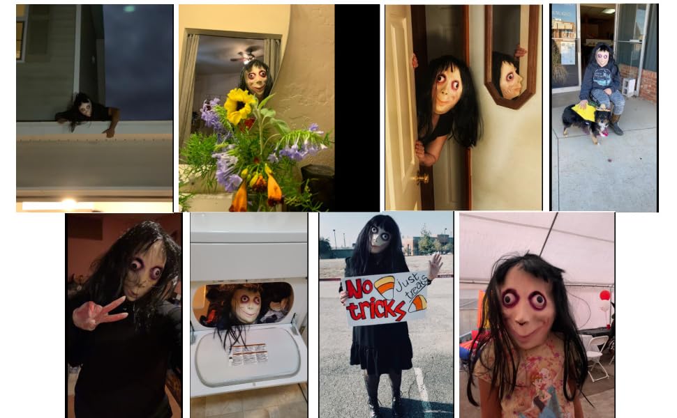 This mask boasts impeccable attention to detail. From the disheveled and lifelike strands of hair to the realistic skin texture, it's all there.Exaggeratedly curved lips, deep-set eye sockets, protruding eyeballs.... It's the perfect prank mask!