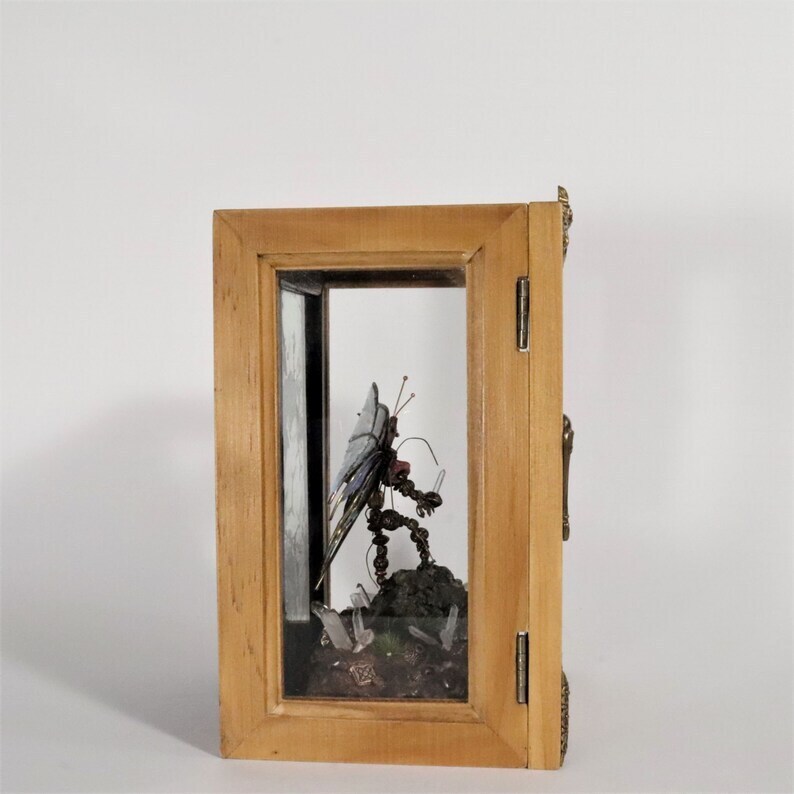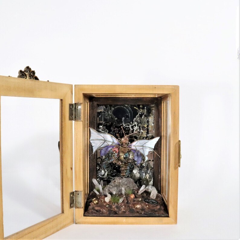 Miniature Fairy Shadowbox, Crystal Nature Shrine, Fantasy Fairy Garden, Miniature Garden Sculpture, Natural Quartz Crystal Steampunk Diorama