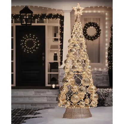 Each shatterproof charm comes in a different cohesive design like striped, solid or red, gold and textured green for added variety. These gorgeous metallic pre-lit decor inspired decorations can be displayed in a number of ways - anchor them to the ground or arrange them at the entryway to infuse a festive mood anywhere.