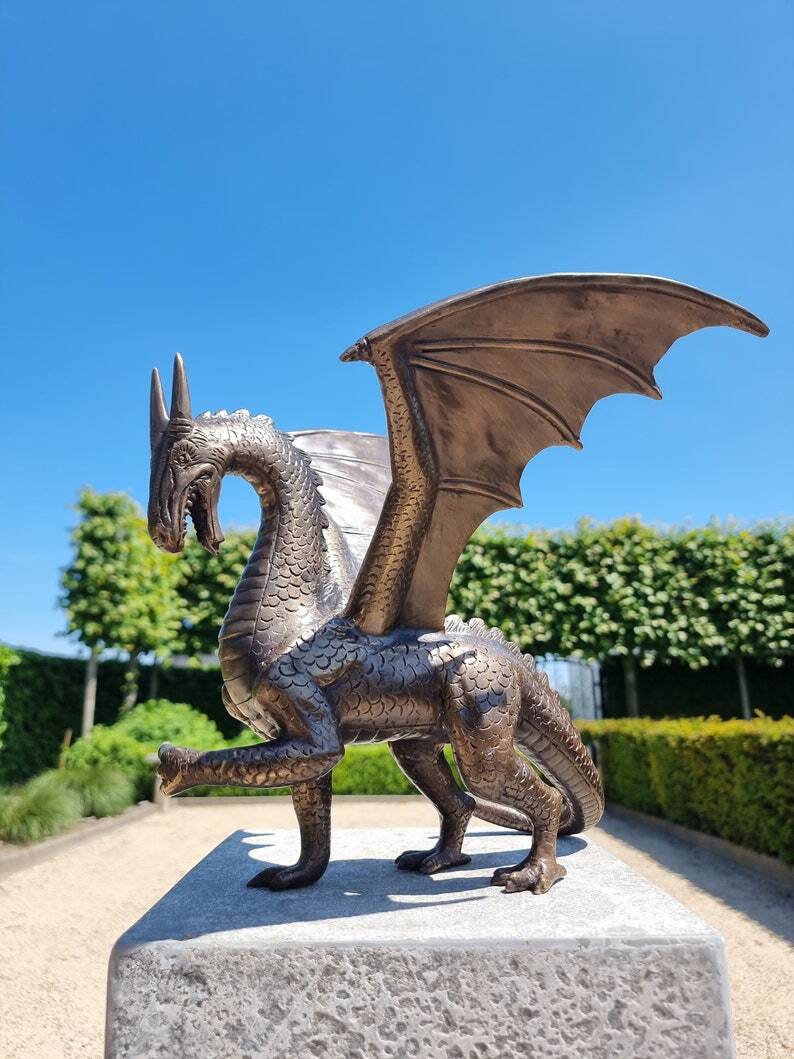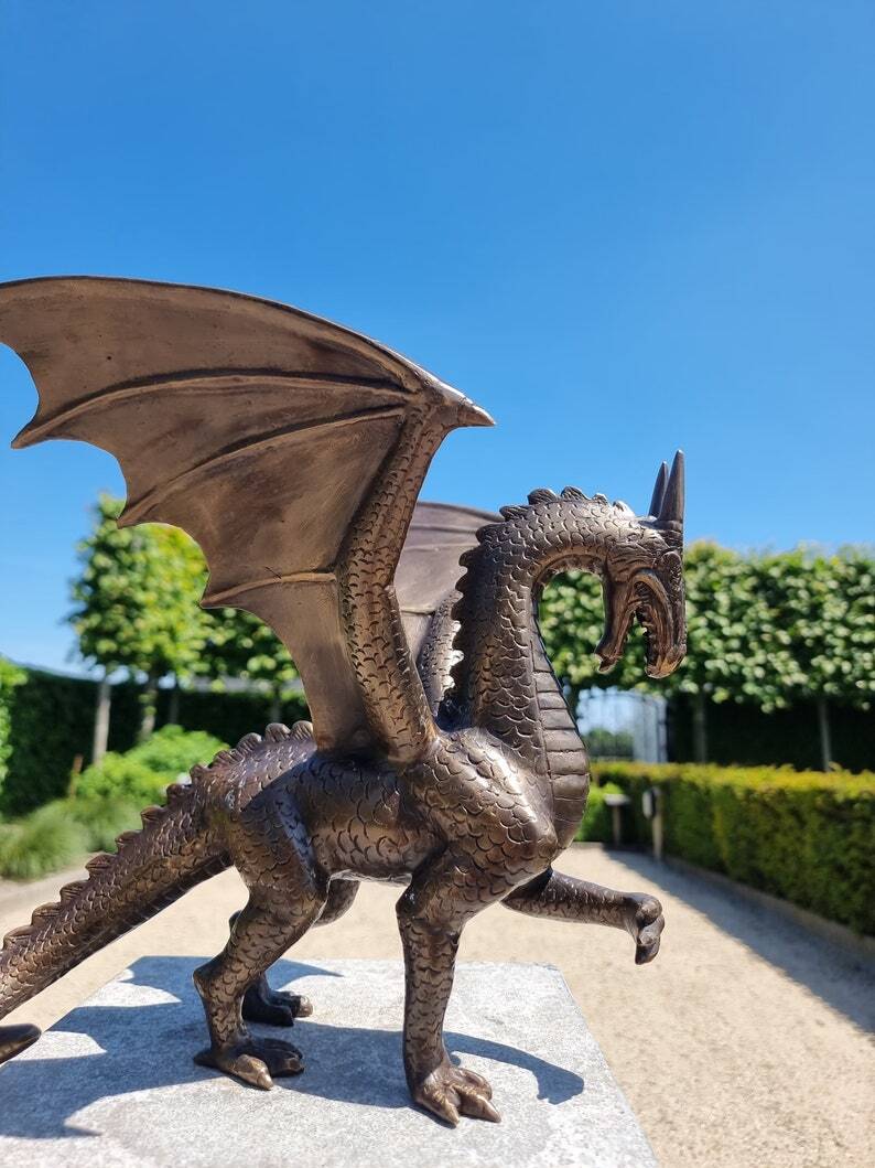 Bronze dragon - Decorative dragon - Dragon figures - Gothic art, fantasy home decoration