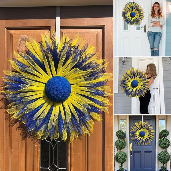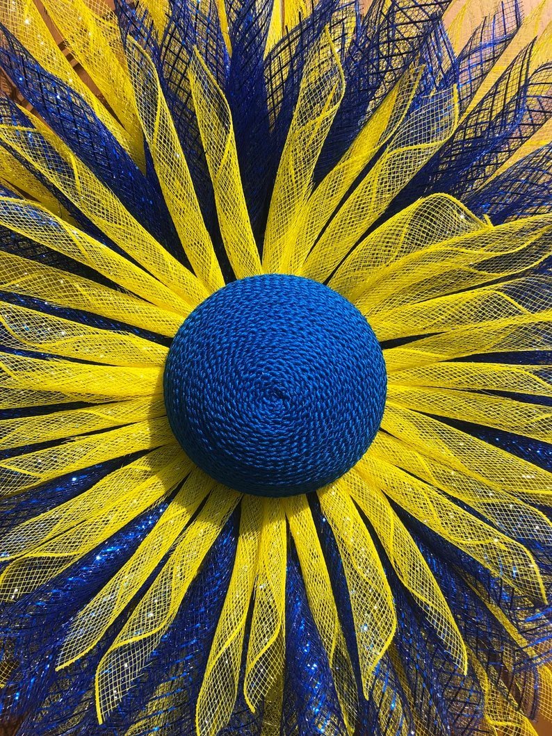 🌞This blue and yellow sunflower flower wreath done in the colors of the Ukrainian flag can be hung on your front door to show your solidarity with Ukraine.