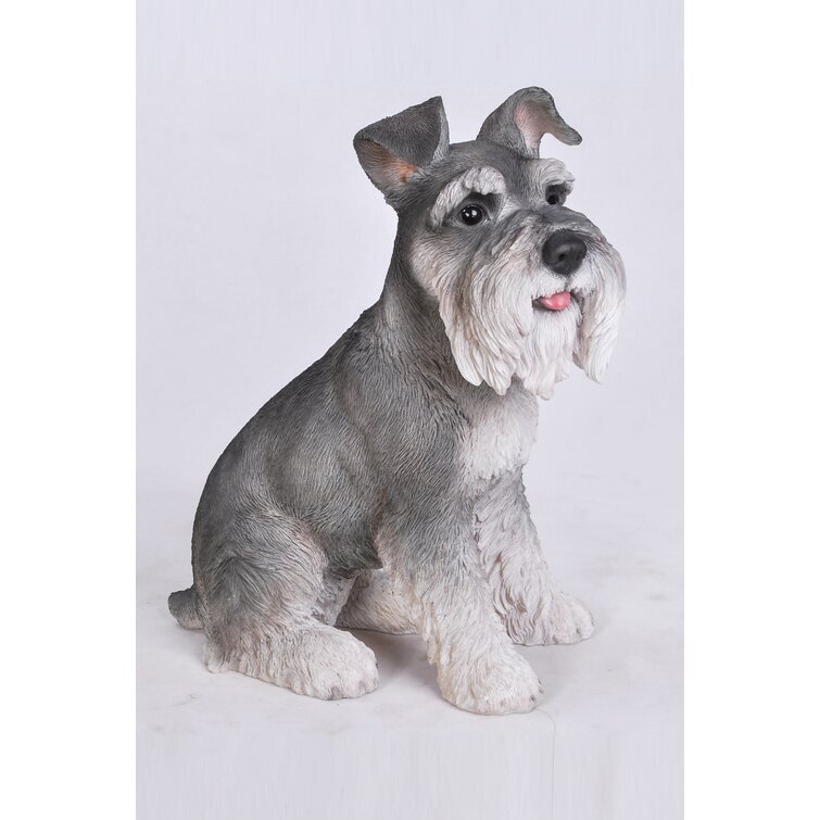 This lovely Schnauzer Statue depicts the dog Seated on its hind legs. Head up in the air, with the tongue out.