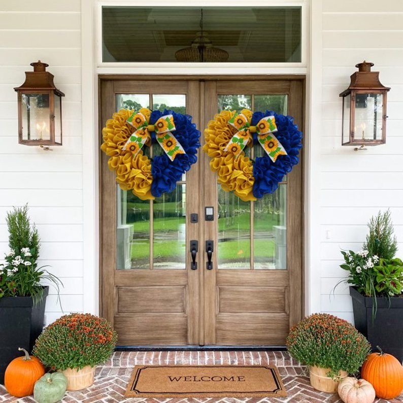 Ukraine Flag Sunflower Front Door Wreath