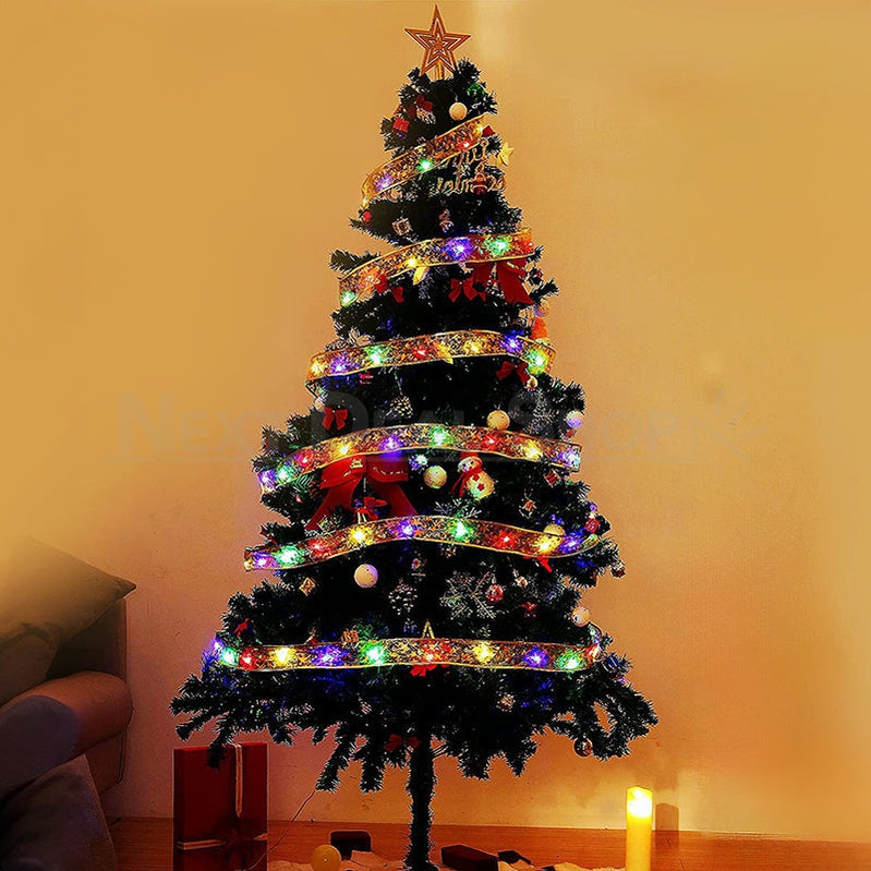 32ft Multi-Color LED Christmas Gold Ribbon Light