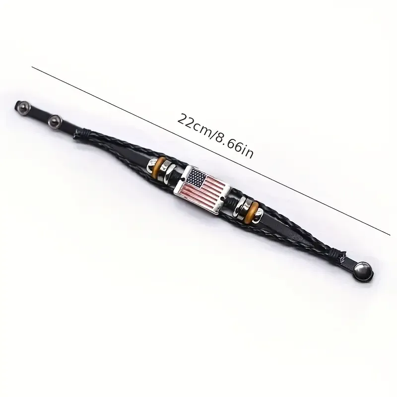 Freedom & Flexibility: Adjustable American Flag Leather Cuff Bracelet