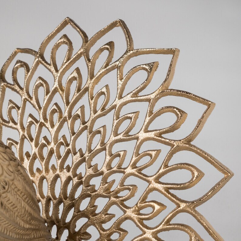 Golden Peacock Statue - Gold Peacock Metal Decor - Brass Peacock Statue - Center Piece - Gold Statue - Home Decor - Housewarming Gift
