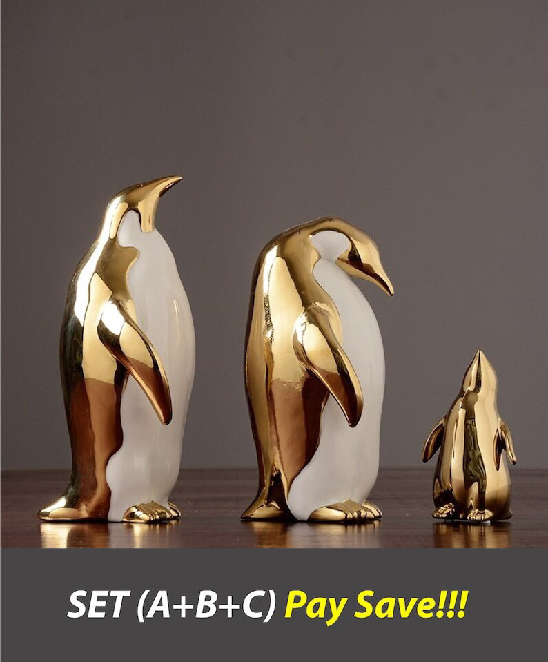 Nordic Ceramic Gold Penguin Figurines A Family Of Three Animal Miniature Crafts Creative Ornaments Home Decoration Accessories