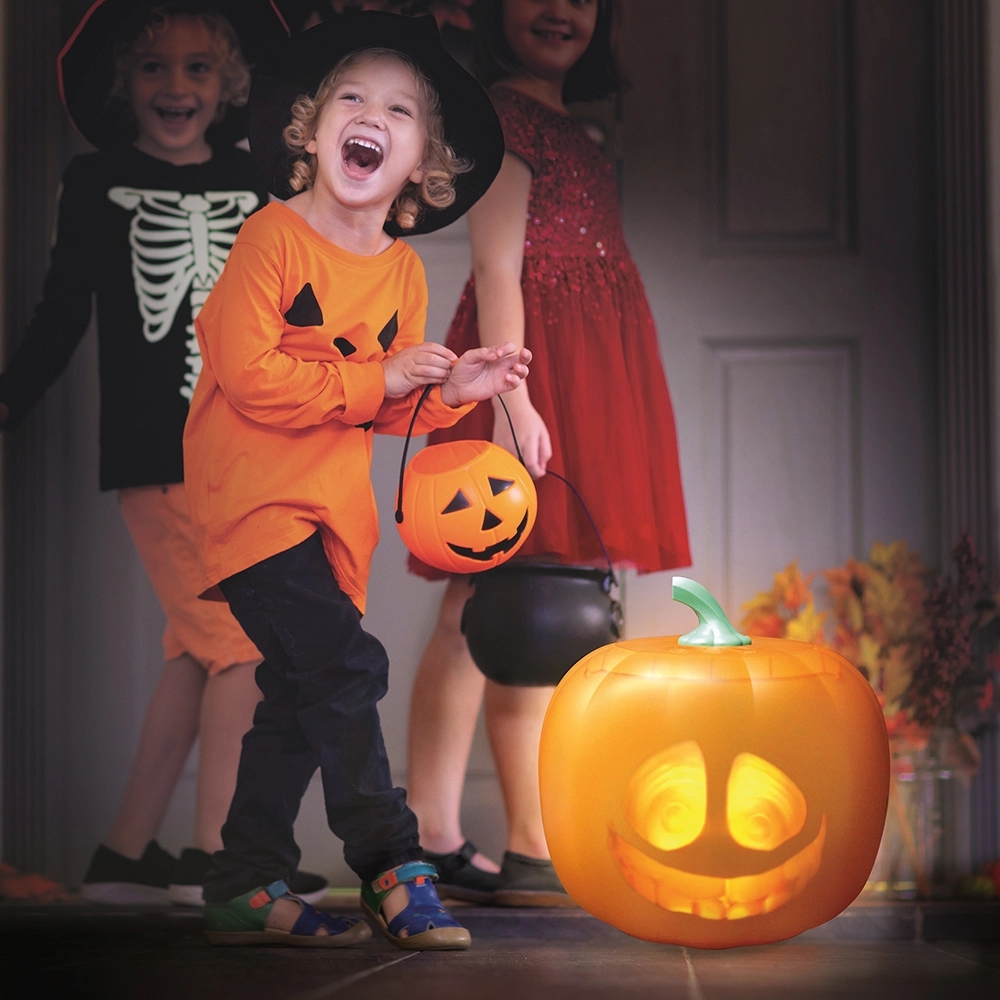 Halloween Talking Animated Pumpkin will add happiness to your Halloween party with his collection of songs and jokes! Three unique character themes (spooky, traditional, and funny) provide over 70 minutes of fun animations. Provide unique and interesting entertainers for more than an hour!